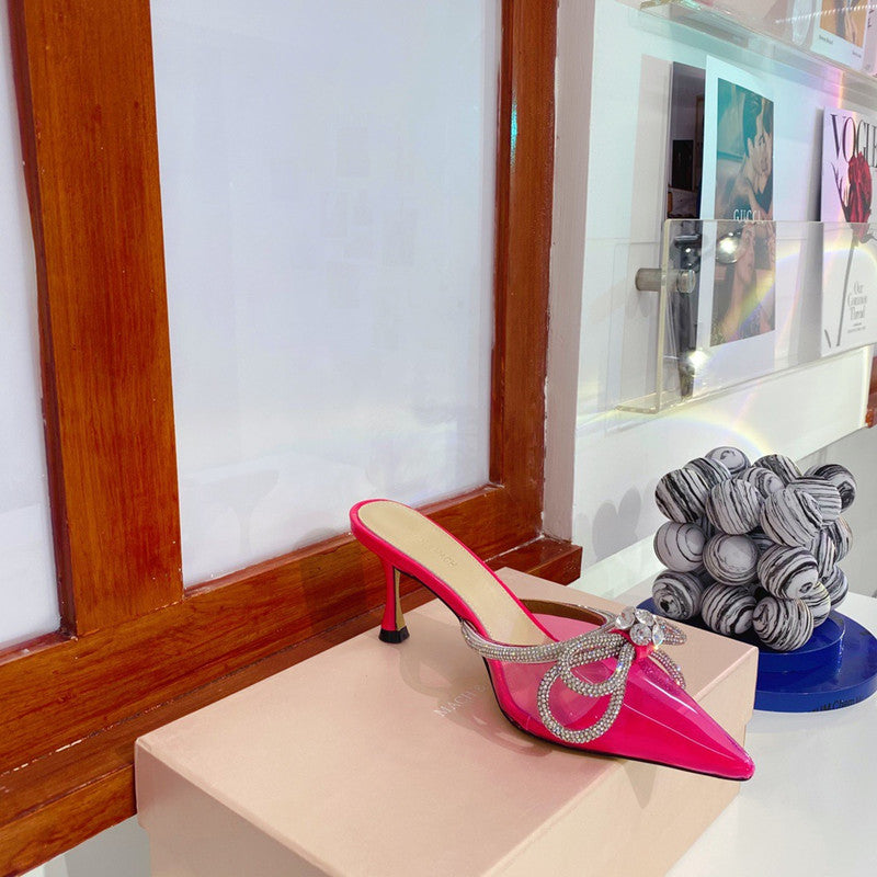 Bow-knot Rhinestone Pointed-toe Stiletto Sandals