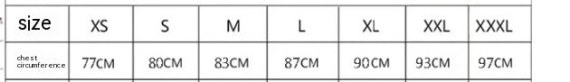 | Chest circumference | 77CM | 80CM | 83CM | 87CM | 90CM | 93CM | 97CM |