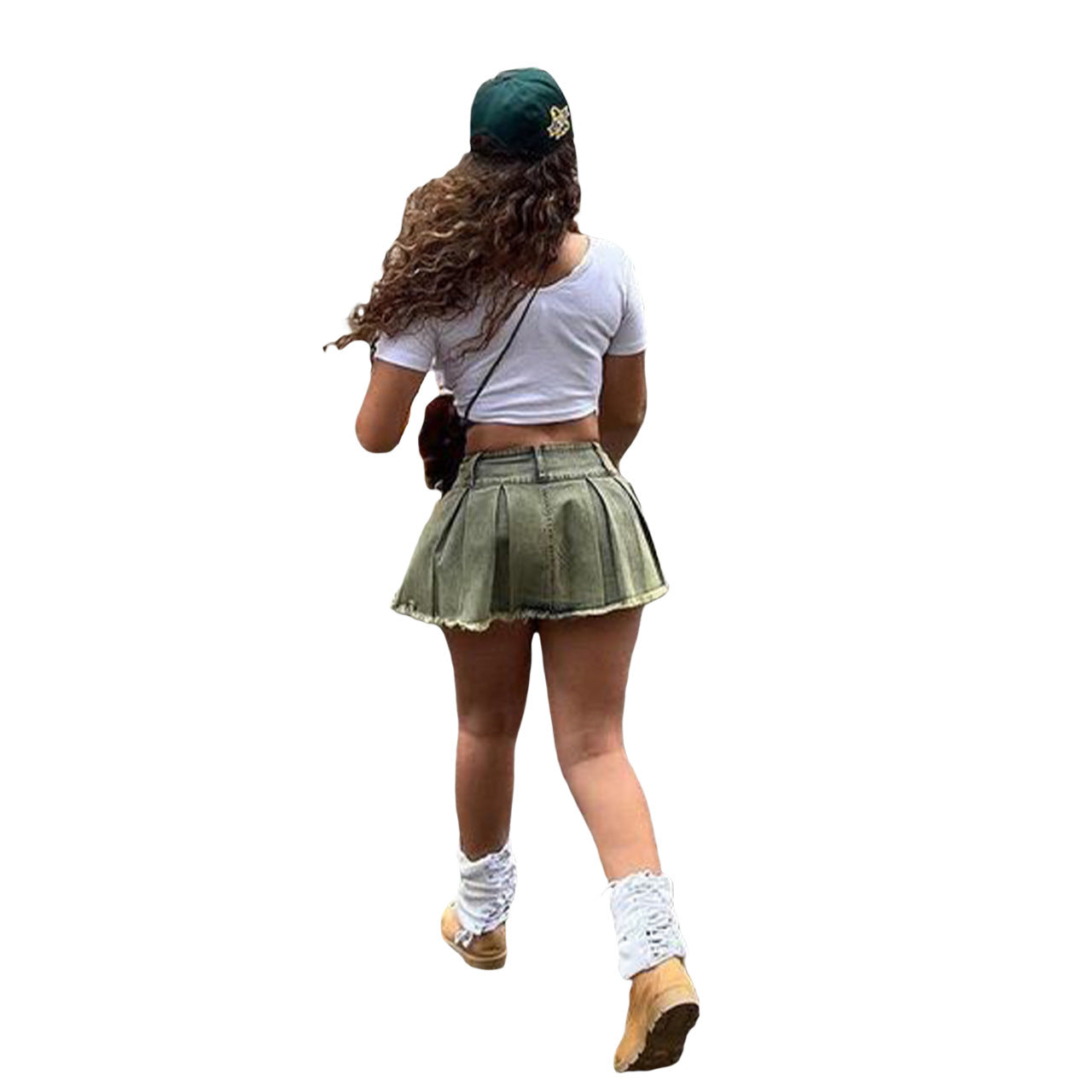 High Waisted Retro Denim Pleated Skirt For Casual Wear