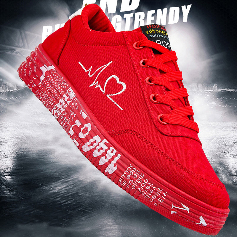 Love Print Canvas Shoes Women Men Flats Lace-up Casual Shoes Lover Sports Shoes Valentines Day