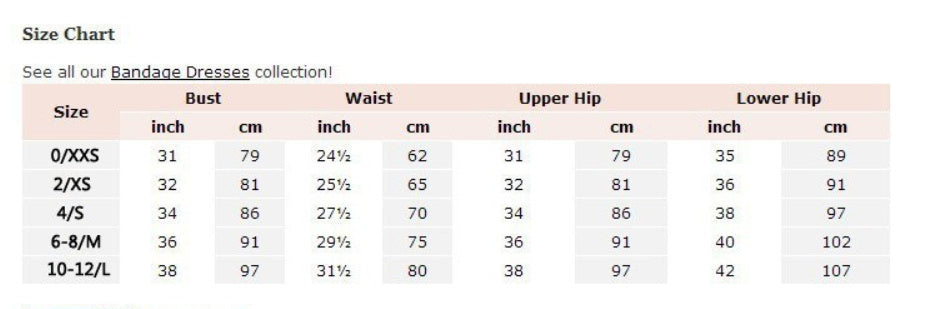 | Size | Bust (inch/cm) | Waist (inch/cm) | Upper Hip (inch/cm) | Lower Hip (inch/cm) |